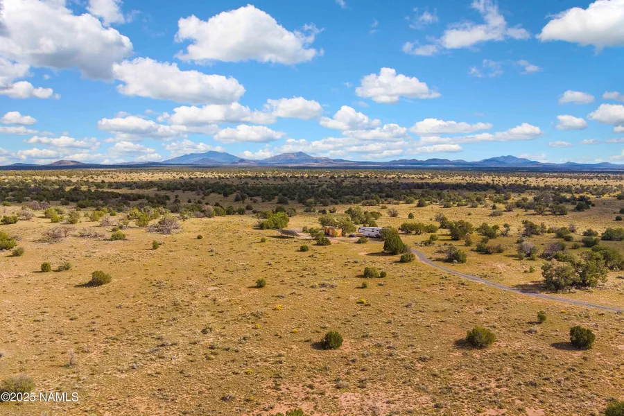 Beautiful 12-acre retreat in South Rim Ranch boasting breathtaking, unobstructed vistas of the San Francisco Peaks. Enjoy year-round access on pristine roads, shaded privacy from mature trees, and the pinnacle of high-desert living. This is the premier spot to bring your dream home to life, with essential prep work already in place. This unique property features a robust off-grid-capable solar setup and practical infrastructure designed to support temporary or ongoing occupancy during a build. The solar system delivers an 18,000-watt capacity, supported by 24 high-efficiency panels at 400 watts each, six deep-cycle batteries, and a reliable inverter, ensuring ample power for critical appliances, tools, and lifestyle needs on site. A dedicated 10x12 storage shed houses the solar batteries and inverter, with an additional 10x10 shed providing extra storage for equipment and materials. A 1,250-gallon Elgin septic system with plumbed lines is in place but currently unpermitted; septic drawings need to be prepared and submitted for county approval in order to meet permitting requirements. Two 2,500-gallon water tanks ensure ample supply for household use, construction needs, and irrigation as needed. For temporary accommodations, the property is equipped with two 50-amp RV hookups, prepared for water and electric connections to support permitted RV living/occupancy during the build. These ready-to-use configurations are in place to support smooth on-site living during construction. Enjoy all of these upgrades in addition to a new cinder driveway. You can also bring electricity to the lot from the nearby electrical line if you choose to. This incredible property has everything and more. Come build the northern Arizona home you've been dreaming of.