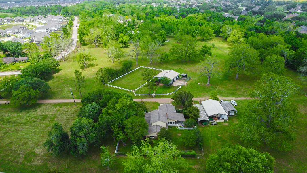 Private and Peaceful 12+ acres, this Pecan Tree Horse Farm boasts improved pastures and gorgeous mature trees that provide a haven close to it all! Bordered by Jones Creek and 700+ ft of frontage on Precinct Line Rd. The 2,500 sq ft home was recently updated with a new roof in 2020 and a completely remodeled kitchen. Two bedrooms and 2 baths along with 2 living areas and a formal dining room complete the downstairs. High speed fiber optic internet. A 48'X36' Morton Horse Barn features 5 stalls, a tack room, feed and hay room, paddock turnouts, outside wash rack, and a lit arena. Another 45'X30' building offers space for hobbies or workout equipment. Covered structures for RV and tractor storage and a pasture horse shed complete this picturesque property. The property is not part of an HOA or MUD and is unrestricted. There has never been water in any of the structures on the property, including Harvey. A recent survey is attached including elevations and topography. Zoned to Class A Lamar ISD!