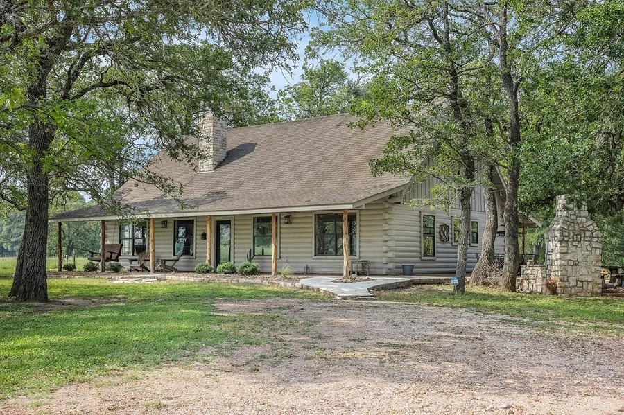 Experience rustic log-cabin charm nestled on 12+ peaceful acres. With 2,380 sq ft of living space, 4 bedrooms, 3 baths & spacious porches, this property has room to relax, entertain, and enjoy nature in style. Step inside to vaulted ceilings, a cozy stone fireplace, and an open-concept layout filled with natural light. The kitchen features ample cabinetry, adjacent laundry room/pantry, ideal for hosting gatherings. Outdoor living is a dream with a sparkling in-ground pool (resurfaced 2019) and pool house with living area, built-in bunks & bathroom?perfect for entertaining. Recent upgrades: both A/C units replaced May 2024, tankless propane water heater installed Jan 2022, new pool filter and pump installed Aug 2024. Property has a pond, water well & septic system. This property is a rare find?combining privacy, charm, and thoughtful upgrades throughout. A serene primary residence, a vacation getaway, or a multi-use investment only 13 miles from Round Top, TX.