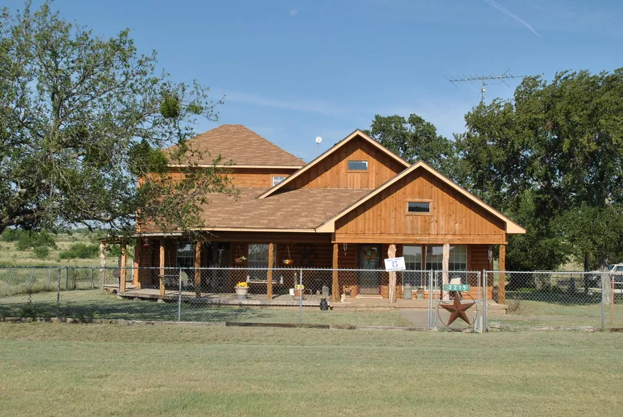 Beautiful two-story log home on 12.345 acres m/l approximately 6 miles North of Graham on Highway 16 North; Four (4) bedrooms, two (2) bathrooms, four (4) car carport is 40' x 27'; Large shed is 54' x 13'; Small shed is 26' x 26'; Chicken coop is 12' x 6'; Enter into a lovely den with hardwood flooring, trey ceiling and decorative lighted ceiling fan; The formal dining room features built-in display shelves and cabinets, a lighted ceiling fan, and ample natural light; The kitchen boasts Pecan wood countertops, built-in dishwasher, double sink with reverse osmosis water filtration system, free-standing range/oven with smooth cooktop, built-in microwave with lighted vent-a-hood and hardwood flooring; The utility room is adjacent to the kitchen and provides full-size washer and dryer connections, a hot water heater, and room for a freezer or second refrigerator; A built-in pantry with glass doors adorns the hallway to the downstairs bathroom; The downstairs bathroom has ceramic tile flooring, a clawfoot tub/shower combination, vanity with double sink and a commode; Three bedrooms are located downstairs and each emit their own brand of Southern rustic charm; A long hallway features a tin ceiling, hardwood flooring, and beadboard walls with chair rail detailing; The large master bedroom is located upstairs and features carpet flooring, a lighted ceiling fan, ample natural light and a huge closet; The master bathroom is adjacent to the master bedroom and provides a step-in shower, a custom wood vanity with dual sinks, decorative light fixtures and a commode; A home office is also located upstairs and provides a quiet area in which to work; You'll be in awe of the view from the gorgeous wrap-around porch with log posts, light fixtures and porch swings; Built in 1905 on the historic Butterfield Stagecoach Line Route!