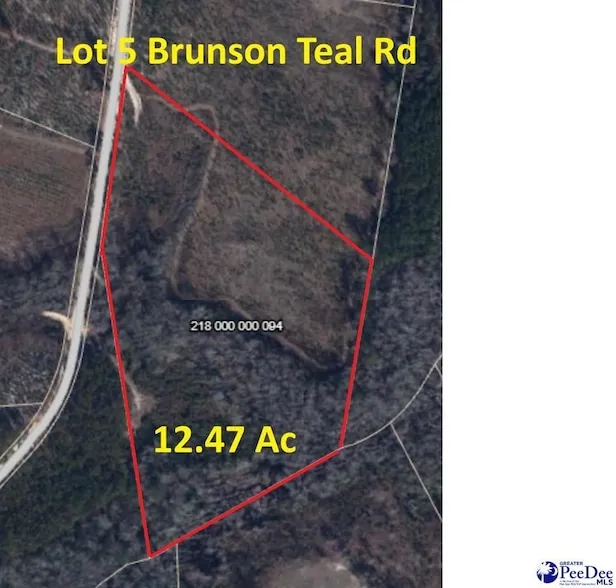 12.47 ACRES, CHESTERFIELD COUNTY, NEAR PATRICK Live your country lifestyle dreams on this beautiful wooded parcel located on Brunson Teal Rd near Patrick SC. Hunting, homesteading, farming, doublewides, horses, chickens, and other livestock are all welcome here! This site is part high and dry and part hardwood bottom with a swampy creek. This ad is for Barefoot Farms Lot 5 but we also have the following currently available as well... Lot 4 is 7.33 Acres next door for $69,900. We also have 9 more lots between 2 and 3 acres each from $22,900 to $27,900. You can combine lots to make a larger property! All lots are newly surveyed and clearly marked. Raw land doesn t get an address until you pull a building permit so do a google map search for Brunson Teal Rd in Patrick. You can t miss our signs and the new survey ribbon. Water will be buyer-installed well and sewer will be buyer-installed septic tank. There is power close by and when you start to build a RESIDENCE the power company will pull to your pole for free. Owner Financing may be possible on this site with 15% down payment. This property is owned by entities of Kent Spehl who is a SC Real Estate Licensee, owner/broker