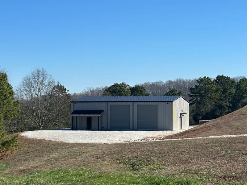 A quality constructed red iron workshop situated on approximately 12.54 acres, with additional adjoining acreage available for purchase. The structure measures approximately 50' x 60' and features 14' wall height with a 16' ceiling height at the ridge. Improvements include three automatic roll-up doors, two standard entry doors, full insulation, and a temperature-controlled exhaust system. The building is equipped with a full bathroom, alarm system with cameras, fiber optic internet service, electrical utilities, and a drilled well. The land offers rolling topography with great views. An additional 19.3-acre tract adjoining the property is currently listed for sale, providing an opportunity for expanded acreage. The property presents multiple potential uses, including the construction of a new residence or the conversion of the existing structure into a barndominium.
