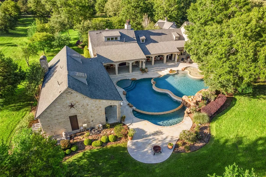 Experience luxurious country living redefined in this exquisite 5BD/4.5BA showplace on over 12 acres in Hockley's Stable Creek near Houston Oaks CC. This designer home is made for entertaining, with 6,105 interior sq ft and over 2,000 covered, exterior sq ft. Featuring a sprawling outdoor poolside oasis and a private lake, this is an ideal retreat or full-time residence just 45 miles from downtown Houston. It impresses with high-end stone, soaring beamed ceilings, hardwood floors and exceptional millwork throughout. Enjoy an inviting great room, gourmet kitchen, trophy room and a wet bar. The owner's suite boasts a study and spa bath, while secondary bedrooms also offer attached baths. Mudroom, utility room, powder room and extensive upgrades inside. Outside, the spectacular covered pavilion with a summer kitchen flows to the magazine-worthy pool, sun deck and casita. Fish in the nearly one-acre lake or stroll the fully fenced property. Detached garage, motor court, porte-cochère.