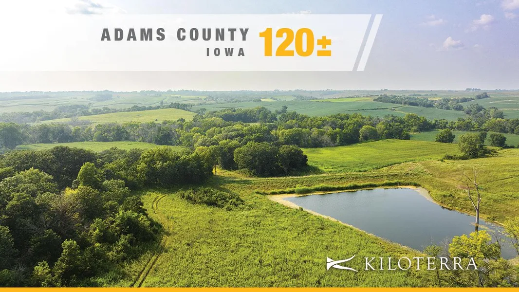 This remarkable 120 m/l acre farm is nestled in the rolling hills of Adams County, Iowa. Located on paved 190th Street, between Prescott and Corning, this property is a rare gem that combines exceptional income, outstanding hunting opportunities, and a breathtaking building site with panoramic views overlooking a stocked 1.5-acre pond.