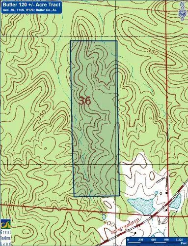 If you're looking for outstanding hunting and timber growing property for sale in Butler County, Alabama, the Shacklesville 120 is a great buy. Located about 12 miles west of Greenville just south of State Highway 10, the property lies in the center of some of the best deer and turkey hunting land in Alabama. The property is accessed by a short easement off of County Road 15 to the north property line. There is a main interior road that runs the entire length of the property with several secondary roads splitting off the main road. Most of the property was planted two years ago in loblolly pines, except for the hardwood areas along the two streams. There is a nice lake site in one of the stream areas with a good supply of running water. The soil is ideal for growing pines and the good hunting in this area is no secret. There are several nice locations for game plots. This south Alabama property would be perfect for someone who enjoys hunting and is looking for a timberland investment as well.