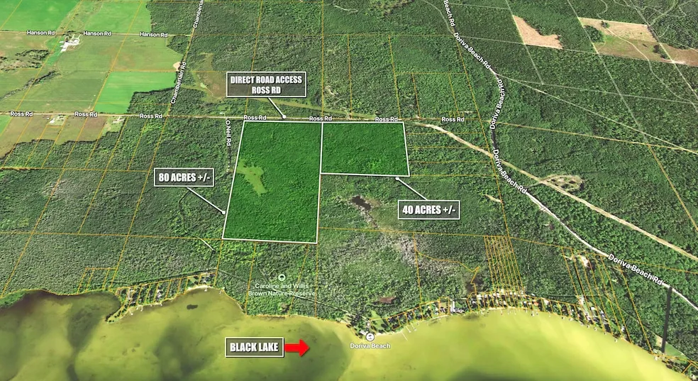 Opportunities abound: 120 acres near Black Lake two parcels one 80 acre and one 40 acre. Great location near Cheboygan two tax id numbers 15101510000200 15101520000100: Over 2600 feet of road frontage allowing for several possiblities for developing or hunting, or recreation or have a large family compound close to Lake Huron Duncan Bay and close to Mackinaw City. Mostly wooded: This is beauatiful property so don't miss out.