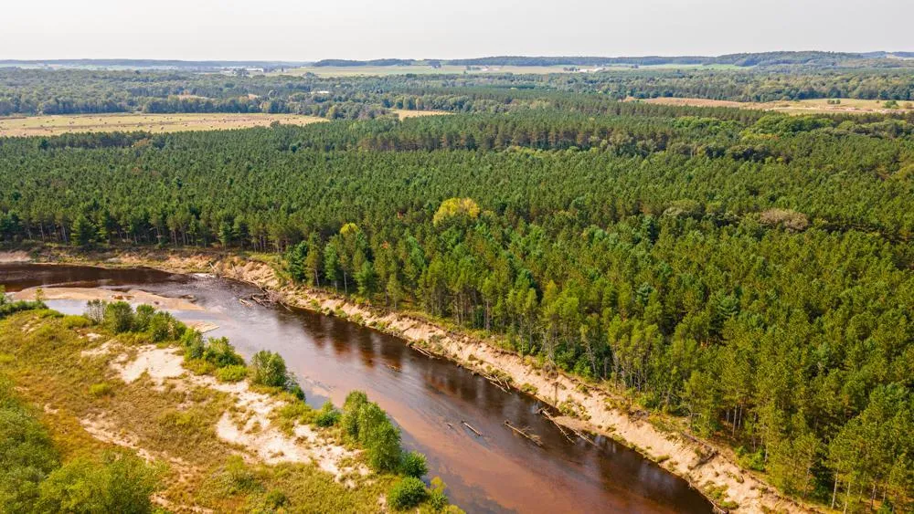 120 wooded acres on the banks of the Eau Claire River near Fall Creek. Predominately red pine and river bottom, the property has been very well managed. The past logging has left plenty of mature oaks blended through the landscape with very strong oak regeneration throughout. Lots of cover, browse, and deer sign makes this property ready to hunt! Hop in a canoe or kayak at Harstad Park and enjoy the scenic paddle to your property, where smallmouth and musky await! There are many great natural funnels on the property as well as several river crossing sites that are well traveled by wildlife! The property is enrolled in the Managed Forest Law (closed) program which gives the owner tax benefits in return for agreeing to timber management practices. Property is managed for both timber growth and hunting purposes.