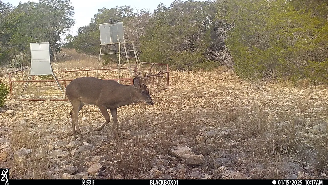 For hunters and wildlife enthusiasts, Lone Elk Ranch is fully outfitted. It boasts three box blinds, four protein feeders (one on a timer), three spincast feeders, two watering troughs, and three water holding tanks. Well-maintained trails lead to strategic hunting locations, with additional cleared areas for ideal visibility. The current owners diligently feed and water the wildlife year-round, resulting in an impressive variety of game including whitetail deer, aoudad, turkey, elk, blackbuck, axis deer, hogs, and stag. The ranch is wildlife-exempt for taxes and has been expertly managed to preserve and enhance its habitat.