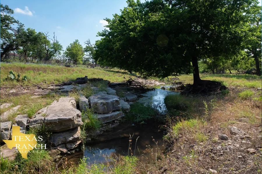 Located just 15 miles from the center of wine country sits a recently renovated 100-year-old German rock home on the banks of Flores Creek. A canopy of Pecan trees shade the cool spring fed waters of the creek-giving the owner multiple options to expand this water source into larger swimming holes.