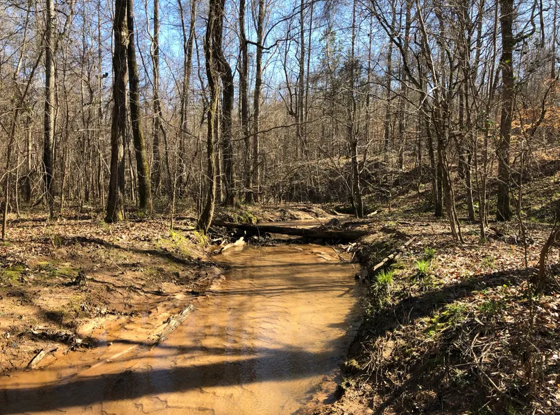 The property is made up of half mature hardwoods, half planted pines and 3 creeks that wind through the property.