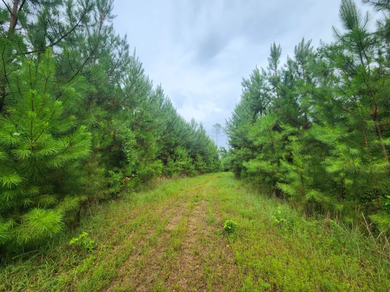 -Tract 7 features 91 acres of various ages of young loblolly pine that are approaching thin readiness. There are 13 acres of bottomland hardwood.