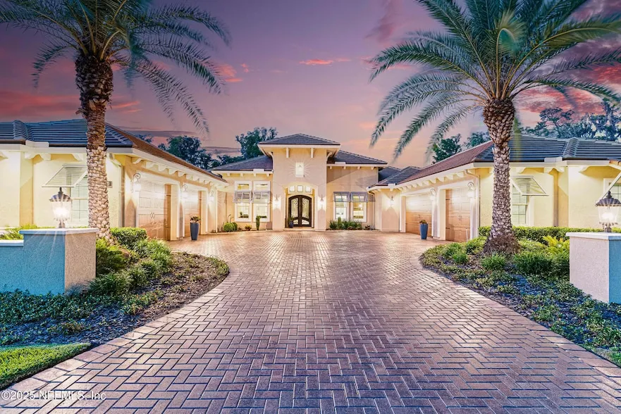 Experience elevated riverfront living at 120 Hallowes Cove, a custom Arthur Rutenberg home in the gated Riverside at RiverTown community. Set on over an acre, this single-level estate blends refined craftsmanship with indoor-outdoor luxury. The chef's kitchen features Thermador appliances, hidden walk-in pantry, gas cooktop, double ovens, and statement island beneath tray ceilings. A spacious great room opens to the screened lanai, resort-style pool and spa, sun shelf, and full outdoor kitchen all with views of the St. Johns River. The private primary wing offers a spa-style bath, custom closet, and courtyard with outdoor shower. A den, bonus room, arrival center, and rare 5-car garage complete this timeless home.