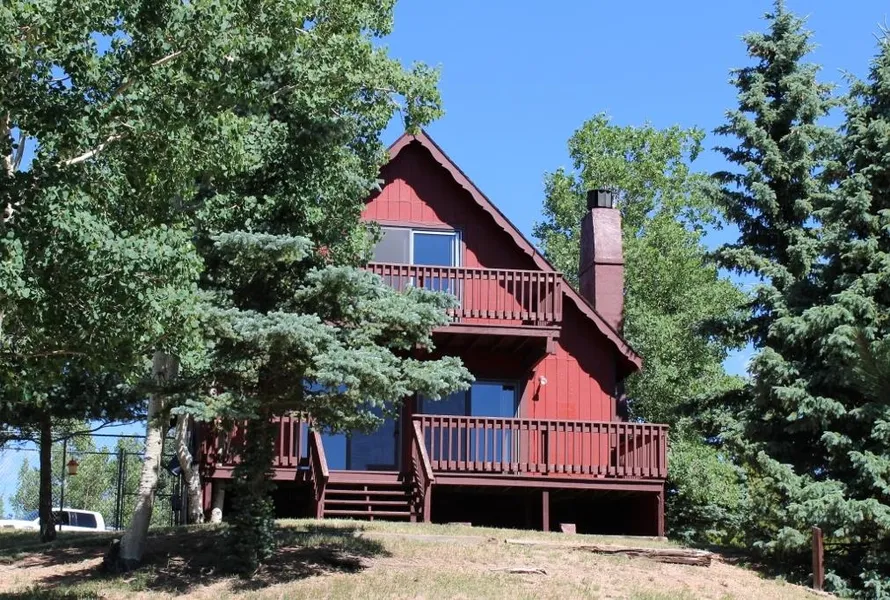 Fantastic Mountain property with gorgeous Pikes Peak View sitting just of the paved county road and sitting on 4.98 acres of level, usable land. Dont let the fencing fool you, the property boundaries stretch way beyond the 1 acre of fenced yard. Walk into a huge entry that could be used as an office or study area, main level bedroom is spacious with a walk-in closet. Nicely sized kitchen has beautiful hickory cabinets and opens to the dining area and living room area. Both walk out to a nice sized deck affording those gorgeous Pikes Peak Views along with your large and private back yard. Upper level bedroom is large and roomy with an area for your bed and a bonus sitting area that has a large sliding door out to a Juliet balcony again sporting Americas Mountain. Oversized 2 car garage has an attached 384 sq ft workshop/barn area to the southern side. Make it what you want. This truly is a piece of heaven sitting in the mountains. New carpet throughout.