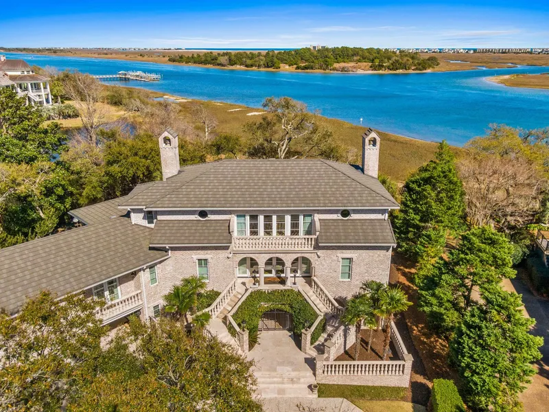 Tucked away at the end of a quiet cul-de-sac on one of Landfall's most scenic and sought after locations, 1200 Great Oaks Drive presents a rare opportunity to own one of Wilmington's most exceptional waterfront estates. With an expansive position along the Intracoastal Waterway, this Mediterranean-inspired villa commands sweeping, uninterrupted views across shimmering waters to Wrightsville Beach and Figure Eight Island beyond. The home's striking presence is only matched by its extraordinary vantage point--sunrises over the water greet nearly every room, while the soft hush of the tide offers a daily rhythm of peace and privacy. Gracefully positioned on a broad, fan-shaped waterfront parcel that widens dramatically toward the Intracoastal, the lot offers an expansive sense of space and privacy rarely found along the coast. The residence unfolds across approximately 6,000 square feet of elegant, light-filled interiors. Every detail has been considered, from the grand formal spaces designed for entertaining to the intimate corners meant for quiet retreat. The heart of the home is a sun-drenched great room with soaring windows that frame the water like living art, while the chef's kitchen flows seamlessly into a warm and inviting family space. Architectural touches throughout pay homage to timeless European design, yet the home is unmistakably tailored for modern coastal living. A handsome paneled study, sourced from the historic Woolworth estate, adds depth and character, while an open-air grotto and waterside terraces invite endless opportunities to gather and unwind. The lower level, complete with a game room and wet bar, opens directly to the waterfront grounds, where gentle breezes and panoramic vistas await. Practical luxuries include an elevator, whole-house generator, hurricane-rated shutters, and a spacious garage with additional covered parking.