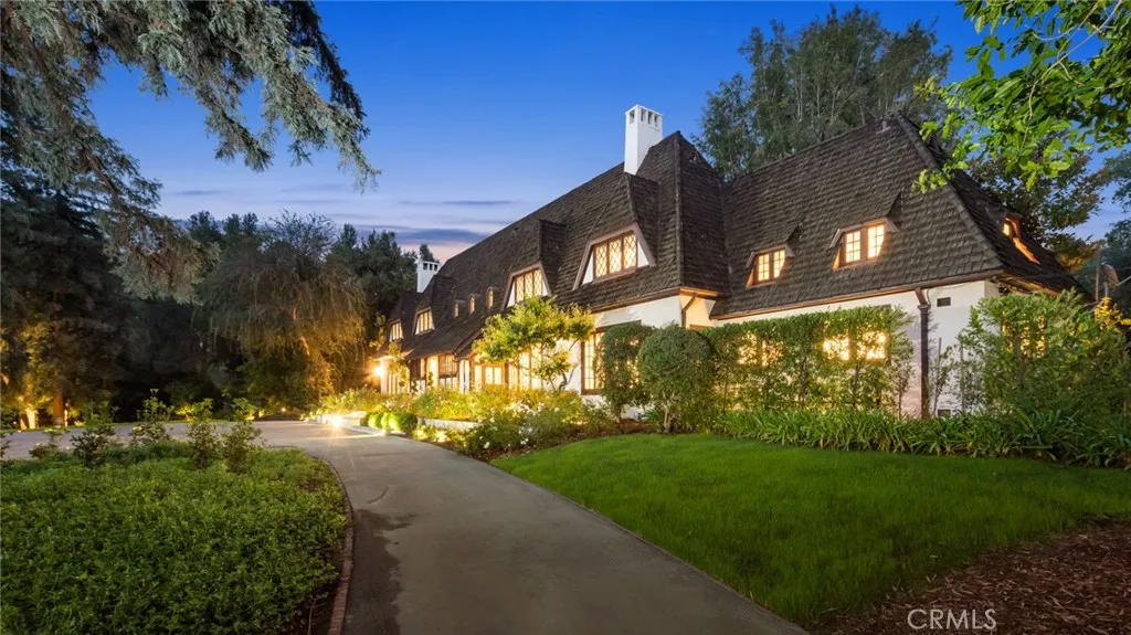 This 1915 English Manor, Garden Arts & Crafts estate is one of the most valuable architectural designs in the Arroyo area of Pasadena. Originally designed by famous architect Stiles Clement (Hollywood Park Racetrack and Beverly Hills High School) the estate was selected as the 50th Annual Pasadena Showcase House in 2014. It's situated on over 3.5 flat, gated acres (about 153,331 square feet). The estate has undergone large-scale renovations and design projects, including upgraded plumbing, wiring (600 amps), modern kitchen and exquisite design of each bathroom; additional large-scale garden projects (2022) making this house the best living and environment. The stunning living room is approximately 24x40, features with bold and exquisite beamed ceiling, Redwood wall panels, a magnificent fireplace, lead glass windows and oak floors. The extra-large family room is even more noteworthy, with each of its floor-to-ceiling windows presenting a beautiful garden views. The large bright dining room and open concept designed modern kitchen and breakfast room, etc., are all connected. The front and back stairs leads to the second floor living area, which has 6 bedrooms, 4 of the bedrooms are en-suites. In addition, there is a warm TV room and a large laundry room. The third-floor space has been remodeled and can be used as a multi-purpose area. The lower-level space (remodeled in 2022) can be used for wine storage and wine tasting. It is worth mentioning that the manor had its own spring well system at the beginning of construction, which has been preserved until now (updated 2022 installed new spring well capture, holding and irrigation system). There are streams, ponds, fishponds, greenhouses, organic vegetable gardens and sports courts/tennis courts layout on the vast front and backyards. The spacious swimming pool leisure area is equipped with bathrooms, a full set of barbecue counter equipment, fountain, TV and audio equipment. Beautiful landscaping filled with towering trees and various flowers blooming in the Spring.