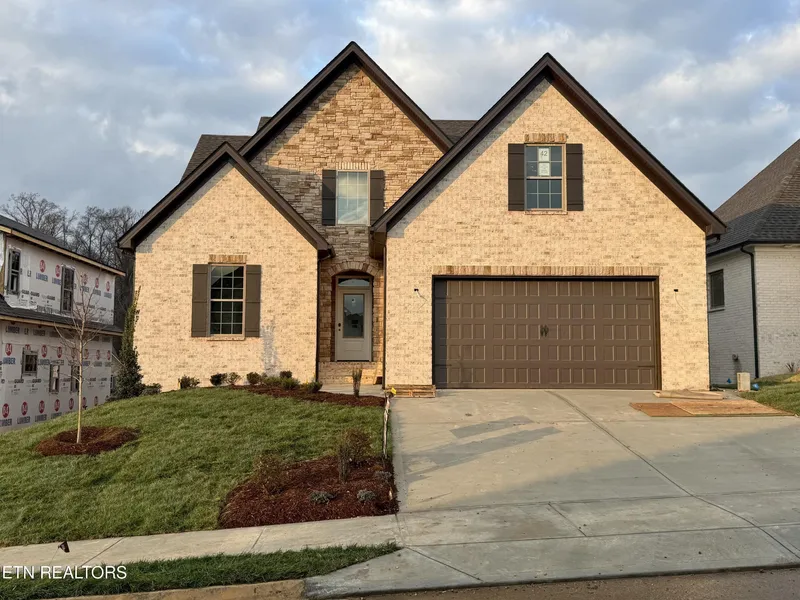Impressive all brick 2-story w/ unfinished basement by one of Knoxville's top builders, this Prestwick model home has a very open floor plan w/ MBR and BR-2 on main level, sunny kitchen w/ granite countertops - stainless appliances - island - tile backsplash & under cabinet lighting opens into dining area and great room w/ stone fireplace and massive glass french doors opening onto covered deck, MBR on main w/ 10-Ft trey ceiling and luxurious bath (free standing tub - tile shower - double vanity w/ granite top & walk-in closet), bedroom 2 on main w/ cathedral ceiling and full bath, 2nd floor features 2 bedrooms - full bath and bonus or media room, rich moldings, 1809 SF unfinished walk-out basement plumbed for full bath (HVAC & electric installed in basement), covered deck w/ stained tongue & groove ceiling overlooks LEVEL backyard, hardwood & tile floors, tankless gas water heater, security system, sodded yard, irrigation, estimated completion April/May 2026.