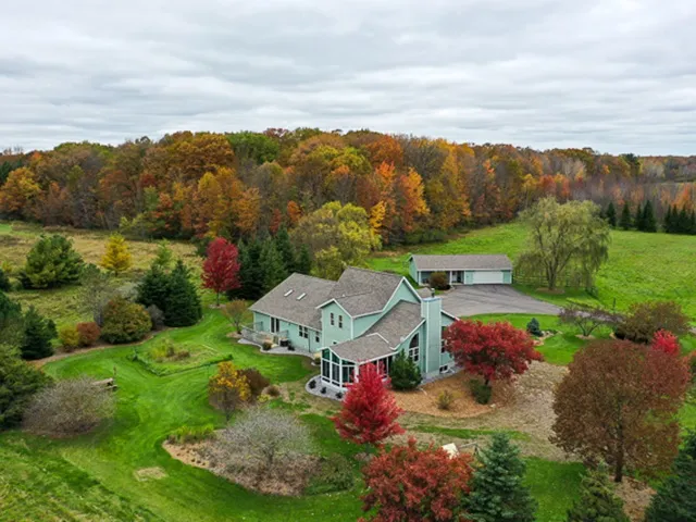 WRAP UP YOUR NEW HOME FOR THE HOLIDAYS with this picturesque 5-6 BR 3.5 BA home nestled on 6.02 acres just minutes from city limits! Open concept living room and dining room designed for your family gatherings is highlighted by the vaulted floor to ceiling stone fireplace, arched windows and tongue and groove wood ceiling. Cozy dinette opens to the sun-drenched sunroom with heated tile floors! The efficiently designed kitchen offers an abundance of cabinet space, complete with all appliances including gas stove top for those who enjoy cooking and a pot rack to keep pots, pans, and whisks at arm's length while showing them off. Island and peninsula with seating offer additional workspace. Main floor master suite, situated for privacy, offers two large walk-in closets, private deck letting in natural light and continental bath, shower stall, and tub. Additional main floor room is currently used as an office but could be converted to an additional bedroom or den. Half bath and laundry are conveniently located off the three-car attached garage. Upstairs you will find two oversized bedrooms, both with walk-in closets. Freedom from the early morning squeeze is guaranteed by the layout of the upper bathroom - sinks are separate from the toilet/shower so multiple people can get ready at the same time. Full-sized basement features two spacious bedrooms, a full bath, storage and a nice sized family room for entertaining and movie night. Tons of nooks, crannies, and closets throughout solve all your storage problems! Enjoy your private park with rolling greens, gardens and shade trees completing your beautiful setting. 29x49 outbuilding offers one side for storage (with overhead door) and other side is currently set up for two horse stalls. Ideal location demands action! Call today for your personal showing! Drone footage available at: https://youtu.be/BcjiT_leIpY