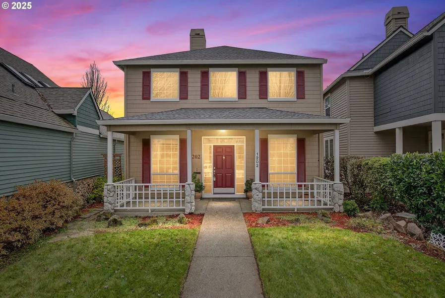 OPEN HOUSE 12/21, 1:00-4:00 PM. Welcome to this stunning FORMER MODEL HOME in the highly sought-after Jones Farm neighborhood of Hillsboro. Perfectly positioned along the edge of CIRCLE PARK, this home blends timeless craftsmanship, thoughtful design, and exceptional comfort. Step inside to find an inviting layout centered around a three-sided fireplace that connects the kitchen, dining room, and great room. Thesoaring ceilings and custom columns define the living spaces withelegance, while natural light enhances every corner. The kitchen shines with custom cherry cabinetry, granite countertops, above- and below-cabinet lighting, and nearly new stainless-steel appliances, including a built-in microwave and a convection, air-frying capable oven. Original hardwood floors span the entire main level, adding warmth and sophistication throughout. Upstairs, the primary suite offers a private second-level patio, a walk-in closet, and a luxurious en-suite bath with dual vanities, a soaking tub, a stand-up shower, and a skylight. Two additional bedrooms and a full hallbath complete the upper level-perfect for guests, family, or a homeoffice. Recent updates include new interior paint, new carpet, a newer 97% efficient HVAC system with AC, a newer roof, and newer exterior paint, making this home truly move-in ready. A large covered front porch and an oversized two-car garage add comfort and curb appeal. Located minutes from major employers like Intel and Nike, with easyaccess to shopping, dining, and mass transit, this home offers the bestof Hillsboro living. Enjoy the blend of community charm, convenience, and modern upgrades that make Jones Farm one of the area's most desirable places to call home. [Home Energy Score = 6. HES Report