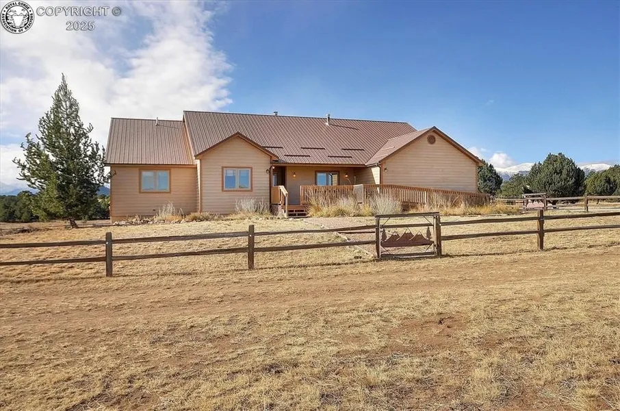 A MUST see is this spacious 4-bedroom, 4 bath retreat which sits on 35 acres in Beckwith Mountain Ranch, offering breathtaking views of the Sangre de Cristo and Wet Mountains. The property provides ample space for horses to roam, along with an abundance of wildlife, and a grazing lease that keeps taxes low. Step inside to discover an open floor plan featuring vaulted ceilings and plenty of windows that fill the space with natural light. The recently upgraded luxury vinyl flooring adds a touch of modern elegance, while the large, new kitchen becomes the heart of this home which is perfect for entertaining friends and family, or enjoy cold Colorado nights sitting in front of the crackling wood stove. An expansive rear Trex deck provides a perfect place to unwind and take in the mountain views. A 800 square foot suite includes its own bed, bath, living and kitchenette areas; perfect for guests, in-laws, or an au paire. The walk-out lower level houses a finished bathroom, a large workshop area, and the opportunity to customize the space according to your needs. Call today to schedule a tour of this remarkable property!
