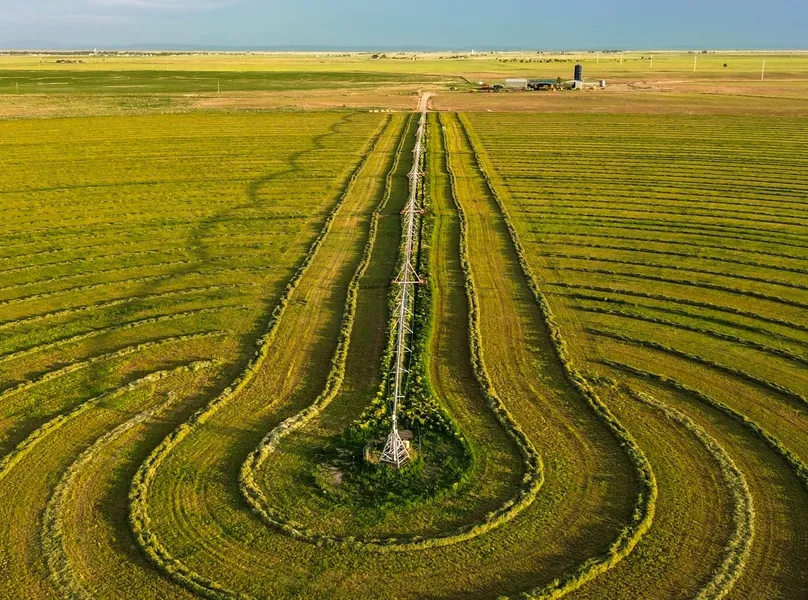 Two irrigated center pivots have been historically used for alfalfa and winter wheat production, yielding approximately 1,000 bales of alfalfa and 300 bales of wheat per year. Local dairies, horse properties, and regional cattle ranches drive demand for the produced crops. A third pivot can be updated to accommodate the increase to 474.5 acres of irrigated land and enhance annual crop production.