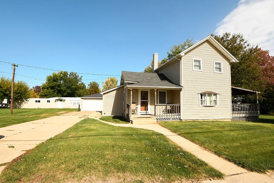 Set on 5 acres, this unique parcel has an updated 3 bedroom, 1 bath farmhouse, a mobile home and a 2 car garage. Backing to Plank Trail with enough yard space for a pool, a garden, even your own trails and just about anything else you have in mind. Welcoming covered front porch leads to open concept living area. Side access through enclosed porch as well and includes stairs to basement with laundry and utilities. Nicely updated kitchen with hardwoods and plenty of oak cabinets. Adjoining living and family rooms with a slider to covered deck. Primary bedroom on the main with 2 additional bedrooms upstairs. A great "work-from-home" option, if you utilize the sitting area as a private office. Bring to life the "As Is" single wide trailer and create related living, a home office, guest quarters or a party room! Rental potential as well? Expansive grounds and wooded land. Room enough for all your "must haves" but don't worry about the full basketball court and park it's just across the road. Do your due diligence and explore the endless possibilities. Unincorporated Will County, New Lenox means limited restrictions, no water bill and lower taxes. At this price point there is so much potential.
