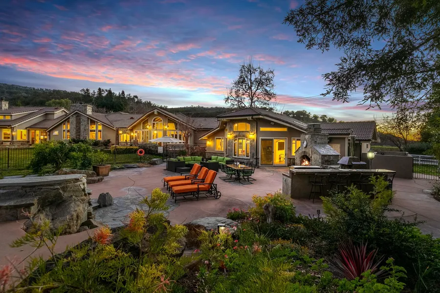Enjoy resort-style living at this country retreat on approximately 10 acres in Upper Ojai. Just 10 minutes from the spas, boutiques, and cafes in downtown Ojai, this private oasis features a lighted, north-south tennis court with a large observation deck, swimming pool with beach entrance and wading pool, spa, outdoor kitchen, family orchard, art or yoga studio, and horse facilities. Flagstone patios flank the main house for indoor-outdoor entertaining, while the 1,200 Sq. Ft. guest house/pool house offers a gym, kitchenette, steam shower, enclosed outdoor shower and changing room, and pool and patio storage. The main house features three fireplaces, large island with breakfast bar, Viking range with griddle, two refrigerators and freezers, wet bar, family room or library, media room, office, two guest wings, six-inch plank floors, custom light fixtures, and upscale finishes. Additional features include a three-car garage, two-car garage, and separate laundry room with commercial machines. 20 KW solar plus 3 Tesla Power walls, public water and private agricultural well. Breezeway 6 stall barn plus extra covered portable stalls, arena for English or Western riding. Open pasture great for planting vineyard, orchard, or letting your livestock graze. This estate has something for everyone.