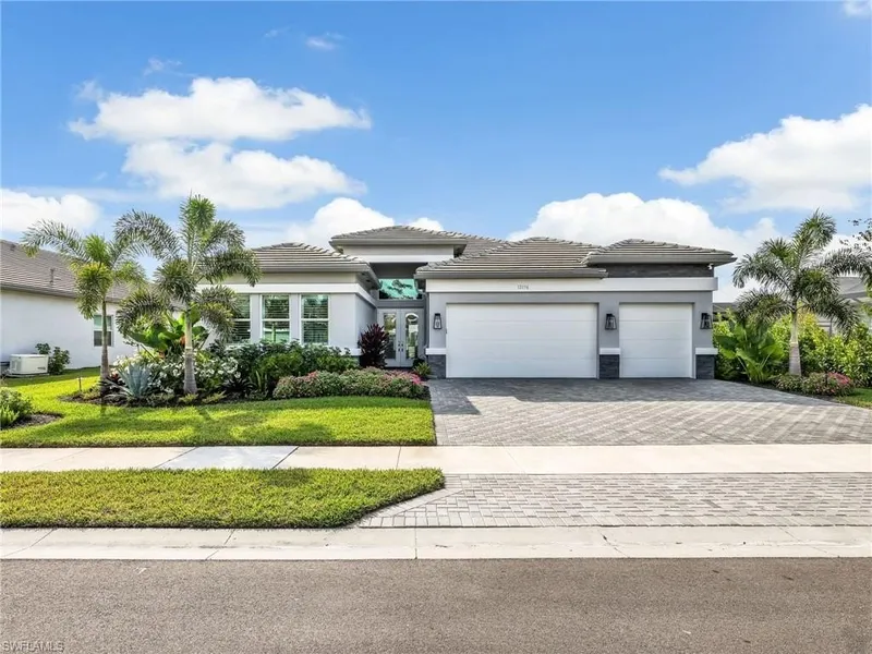 Welcome to the exquisite Marina Model, impeccably designed home featuring 3 bedrooms plus a private office, showcasing refined coastal Florida decor and designer finishes throughout. The office features a custom built-in desk and entertainment area creating a sophisticated functional workspace. This 3.5 bath residence is richly appointed with extensive millwork, designer lighting, custom window treatments, and plantation shutters, while California closets throughout provide elegant organization. The great room is anchored by a stunning electric fireplace, seamlessly blending warmth and style. The gourmet kitchen is a show piece featuring custom built in pantry with roll out drawers, beverage center and thoughtful upgrades for both entertaining and everyday living. The indoor living flows effortlessly to the outdoors through hurricane-impact windows and doors leading to a full-view screened lanai overlooking a serene water view. The heated pool, complete with built in seating and tranquil waterfalls creates a true resort-style retreat, complimented by a beautiful outdoor kitchen. The temperature-controlled garage is finished with an epoxy floor and custom storage cabinetry, offering both luxury and practicality. surrounded with lush landscaping and maintained to perfection. This home truly shows like a model and delivers the ultimate Florida lifestyle. The clubhouse is an astonishing 43,000 sq ft filled with lap, swimming and resistance pool. Treat yourself to a spa day and never leave the neighborhood. The Gather Restaurant offers some of the best food to ever meet your palate preference. Gym/workout area has some of the best high-end equipment to reach your personal goals. Multiple club rooms and a show room for entertainment of all kinds. this clubhouse is nothing short of spectacular.