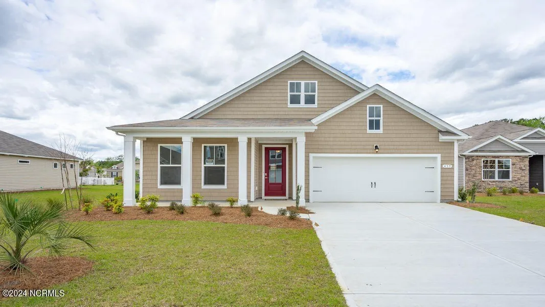 Welcome Brunswick Plantation! A gated community with 24 hours security, 27 hole Championship Golf Course on site (membership not included), 11,000 sq. ft. amenity center with meeting and activity rooms, fitness center, two pools (salted indoor and outdoor), indoor catering kitchen, outdoor grilling area, walk to restaurants onsite, multiple tennis and pickle ball courts. Close to shopping and dining in Calabash and the Myrtle Beach area in SC. You don't want to miss out on this home! The popular Dover plan is a masterfully designed home with a great open concept kitchen, living, and dining area. Features include granite countertops, a tile backsplash, a spacious walk in corner pantry, stainless appliances, a large island with breakfast bar. The private owner's suite offers a large walk-in closet, dual vanities, and a 5' shower. Also located on the primary level are 2 additional bedrooms and a flex room which could be used as a study or den. Upstairs is a nicely sized loft area, bedroom and full bathroom. Access to the rear covered porch just off the dining area creates wonderful outdoor living space. This is America's Smart Home! Each of our homes comes with an industry leading smart home technology package that will allow you to control the thermostat, front door light and lock, and video doorbell from your smartphone. *Photos are of a similar Dover home. Pictures, photographs, colors, features, and sizes are for illustration purposes only and will vary from the homes as built. Home and community information, including pricing, included features, terms, availability and amenities, are subject to change and prior sale at any time without notice or obligation. Square footage dimensions are approximate. Equal housing opportunity builder.