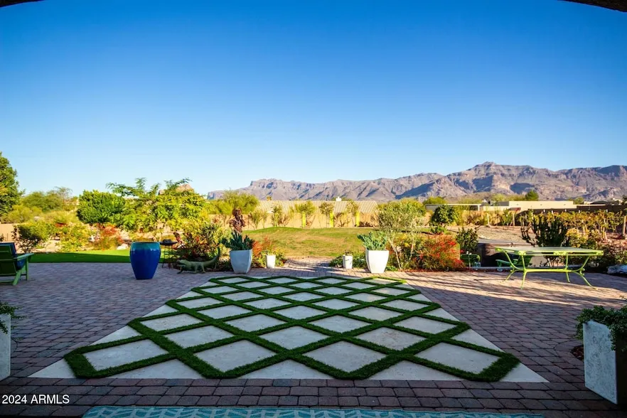 You will love this sprawling hacienda-style home, with shady old-growth Ficus trees, a gated courtyard entry, your own wine vineyard, and a separate fruit tree orchard just outside your spacious Next Gen suite, with its own full kitchen and laundry room. You're on a prime lot in Peralta Canyon, one of 25 exclusive homesites on 1+acres with views of the legendary Superstition Mountains. Your lot is one of few unobstructed views of the Dinosaur Mountain. Are you ready to enjoy a resort-style vacation every day? You'll rise each morning to sweeping mountain views from your primary bedroom, and enjoy coffee on the expansive paver patio extending the length of the house. A wide staircase descends into the grassy yard, with a private hot tub alcove to the east in view of the pro-designed vineyard where pink sunsets wash over the world-famous peaks. House upgrades include resilient plank flooring throughout all main home bedrooms, living room, sitting room, hallways, and hall closets. Neutral tile covers the entry, all baths and both kitchens, and both laundry rooms - yes, there's 2 laundry rooms and the Next Gen WD is included! The Next Gen suite has carpet in the bedroom and living room. Not all homes on Fossil Springs have the Next Gen suite, which adds value to your home investment. This home-within-a-home offers a huge patio of pavers overlooking the fruit tree orchard with views of Dinosaur Mountain and the West end of the Superstition Mountains. Both the main home and Next Gen suite have cherry cabinets, including 6-drawer vanities in all baths. Trails run throughout the community, with gym equipment stations and sport courts, including a pickle ball court, a basketball court, a grassy volleyball area and cornhole stations. Playgrounds and picnic areas with barbecue grills offer more fun and relaxation. Seeking adventure? Head east. Wild mustangs in corrals border the Southeast corner of the Peralta Canyon neighborhood, which borders 1000s of acres of State Trust land. Open range cattle, including Texas Longhorns and Black Angus, graze the land where gold panners and stage coaches crossed over a century ago, and where ranchers and cowboys still do! Peralta Canyon is a friendly and relaxed neighborhood with easy parking and room to roam. You'll feel like you're in the middle of the wilderness, when you're just 5 minutes from Walgreens (w/FedEx services), medical, dental and postal services, a bakery and restaurant, and Gold Canyon Golf Resort & Spa. Another 5 minutes takes you to Wells Fargo, Edward Jones, Gold Canyon Vet, Basha's, and Starbucks. Sky Harbor and Mesa airports are each about 40 minutes away. But you won't want to leave once you live here. Welcome Home! A HEALTHY LIFESTYLE Peralta Canyon is sprawling community with a fun and social atmosphere. Easy walking trails are steps from your home, where Texas Longhorns, Black Angus and wild mustangs roam on State Trust land and historic trails stretch for miles. Canyon Lake, 13 miles away, is home to native big horn sheep and white tail deer, and a wide range of birds and fish. Shaded picnic areas provide year-round fun for families, and Fido is welcome too. Fishing, boating, kayaking and paddle boarding are popular activities here, and motor-free Boulder Canyon, with its slot canyon, offers a more peaceful experience to enjoy the wildlife - from big horn sheep, white tail dear and a wide range of birds and fish species. If you're looking for rapids, drive 17 miles to the Salt River, where you'll share the waters with wild mustangs, descended from the Spanish Conquistador era. YOUR INVESTMENT Gold Canyon is on the cusp of expansion, with the Tela Peralta eco-tourism resort recently approved to build a 43-unit glamping facility and holistic healing center on 125 acres near the end of Peralta Road. Superstition Acres, a 25-acre site with a wine vineyard and pomegranate grove, is 2 miles down Peralta, with plans to serve the public and tourism industry, pending Pinal County zoning changes. A master planned community spanning 2700 acres is already underway in Apache Junction, with 10,000 homes planned. Your timing is right to buy a home in Peralta Canyon, a wise investment today.