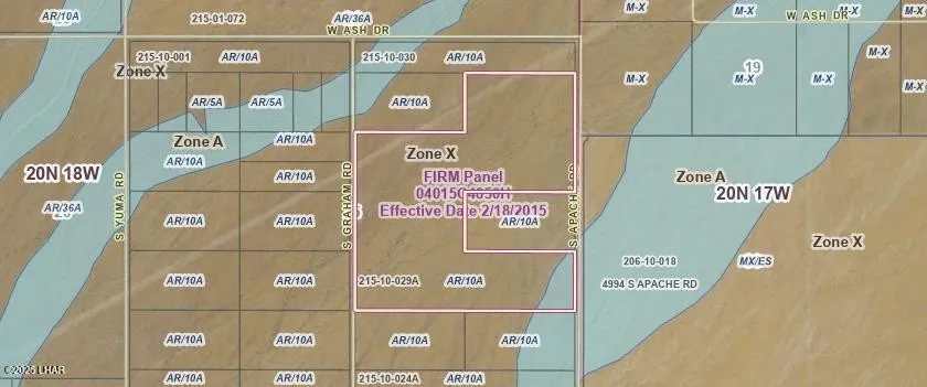 121 acres adjacent to the industrial corridor off Apache Rd South of Oatman HWY and West of I-40. Zoned AG/RES with Gas pipeline running thru NW corner. A few acres of flood zone A in SE corner. Power across the street. 80 adjacent acres to the West also available