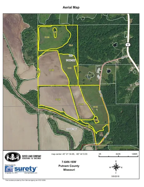 121.71 Acres located in Putnam County Mo. Farm is made up of roughly 100 acres tillable of which are mainly bottom ground acres. Rest in draws, waterways, and hardwood timber on the northeast side. Farms in this area are known for providing giant whitetails and big gobblers. Please contact Andy Boyer for your own private showing 636-295-1476.