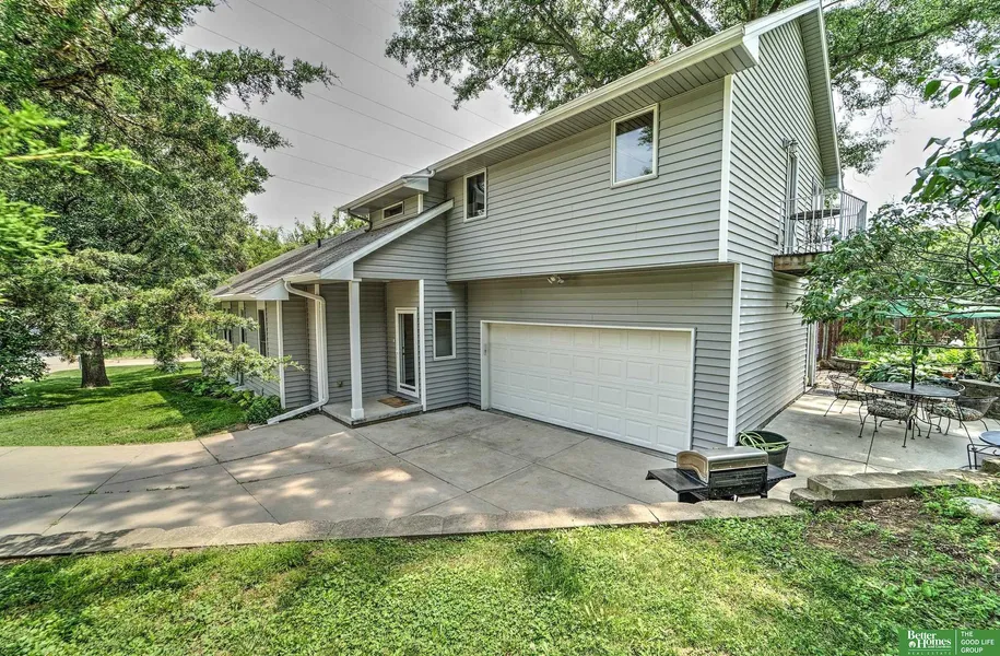 Country Charm and City Close. This is a rare opportunity to own a beautiful acreage nestled in Bellevue's Clinton's Subdivision near Historic Bellevue Boulevard District. The 1926 updated home features a thoughtful addition and sits on 1.44 acres just minutes from Offutt AFB and convenient access to I-80. Offering 3 bedrooms, 3 bathrooms, main floor laundry, a cozy gas fireplace, 2-car attached garage, a 1-car detached garage for storage and large front porch with a swing. The main floor features original hardwood floors, wood trim, solid doors, and a classic bathroom with vintage clawfoot tub. The spacious primary bedroom features a private balcony overlooking the property and bathroom with whirlpool jet tub, separate shower and walk-in closet. The lower level has a private entrance and patio and includes a kitchen, laundry, bath, rec room and flex room - ideal for home office, gym, or nonconforming bedroom. Step outside to a beautifully landscaped patio and butterfly garden.