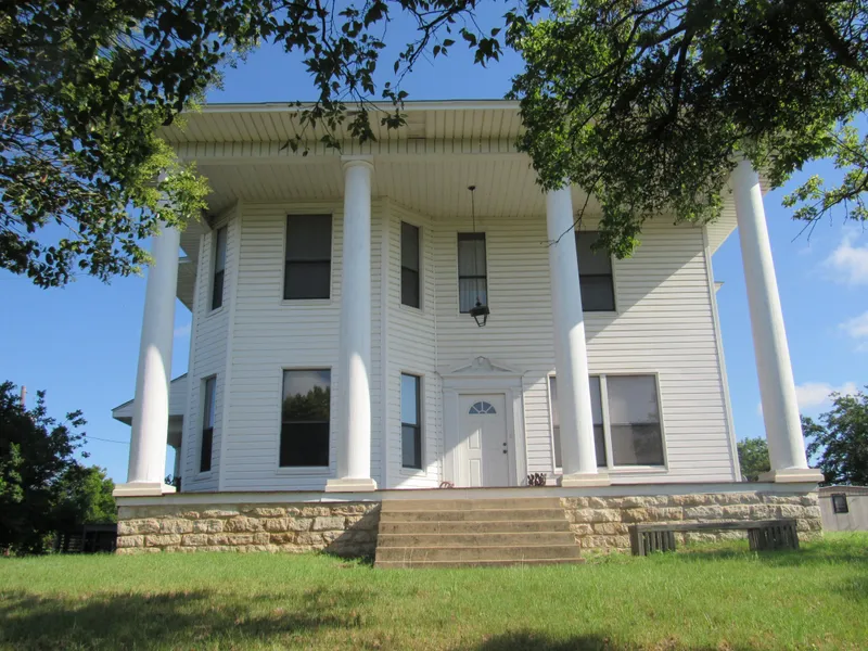 a grand view of Goldthwaite. The rock work around the home has been redone along with the front columns. Listed by