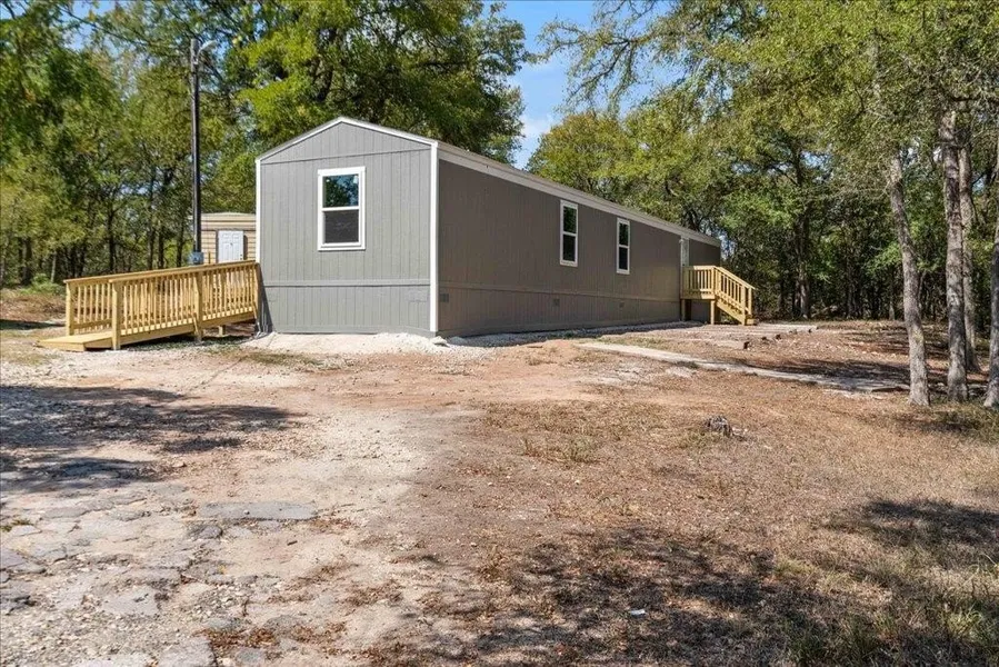 Escape to the country in this graceful single-story manufactured home, situated on a serene 1-acre lot in Dale, Texas. The property is blanketed with trees, providing a peaceful and private setting. Exterior steps lead to a storage shed, perfect for storing outdoor tools and equipment. Inside, the home features a functional layout with vinyl plank tile flooring throughout, creating a warm and inviting atmosphere. The living room boasts great natural light and a high vaulted ceiling, making it feel spacious and airy. The open kitchen is bright with recessed lighting, an induction cooktop, and the convenience of a laundry room. The primary bedroom is a relaxing retreat, with a high ceiling, recessed lighting, and an en-suite bathroom featuring a walk-in shower and ample closet space. The two secondary bedrooms offer plenty of room, high ceilings, and the same beautiful vinyl plank flooring found throughout the home. The true highlight of this property is the expansive 1-acre lot, providing ample space for outdoor activities, gardening, or simply enjoying the peace and quiet of the country. Imagine hosting gatherings, raising animals, or having room for a garden or outdoor projects. This property offers the perfect blend of tranquility and freedom, making it an ideal retreat for those looking to escape the hustle and bustle of city life. With its private setting, functional layout, and beautiful surroundings, this home is a rare find in the Dale area. Don't miss out on the opportunity to make this serene retreat your own.