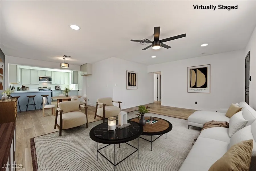 *** Now accepting FHA!***Just minutes from the Water Street Plaza's dining and entertainment, this beautifully remodeled 4-bedroom home has new window and stucco, no HOA, possible RV parking and spacious backyard. Inside, you’ll find an open-concept layout filled with natural light, featuring a stylish accent wall in the living room, ceiling fans, recessed lighting, plush carpeting, and laminate flooring throughout. The updated kitchen has views of the backyard and showcases custom cabinetry with gold hardware, sleek countertops, stainless steel appliances, recessed lighting, and a breakfast bar with seating. Both bathrooms have been fully upgraded with modern tiled showers, rainfall shower heads, built-in niches, chic vanities, framed mirrors, and designer lighting.