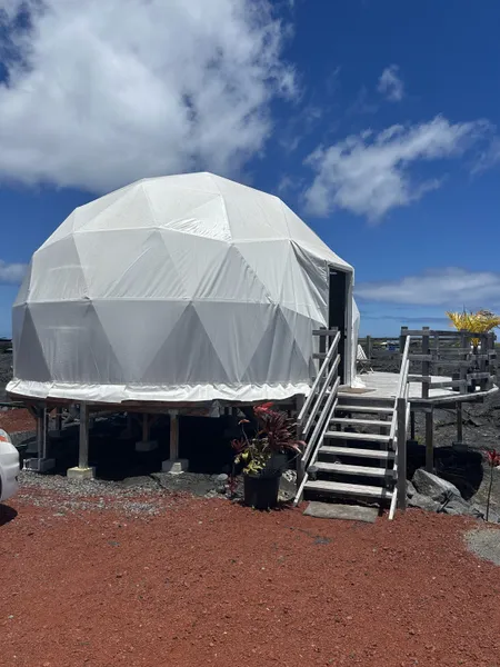 15,000 sq ft of Paradise! A unique combination of a Geodesic Dome, 40 foot Container and a wooden cabin structure creating the most fantastic living spaces at eclectic Kalapana Vacation Lots. Built upon 2 adjoining 7,500 sq ft lots 3-1-2-12-127 and 128.