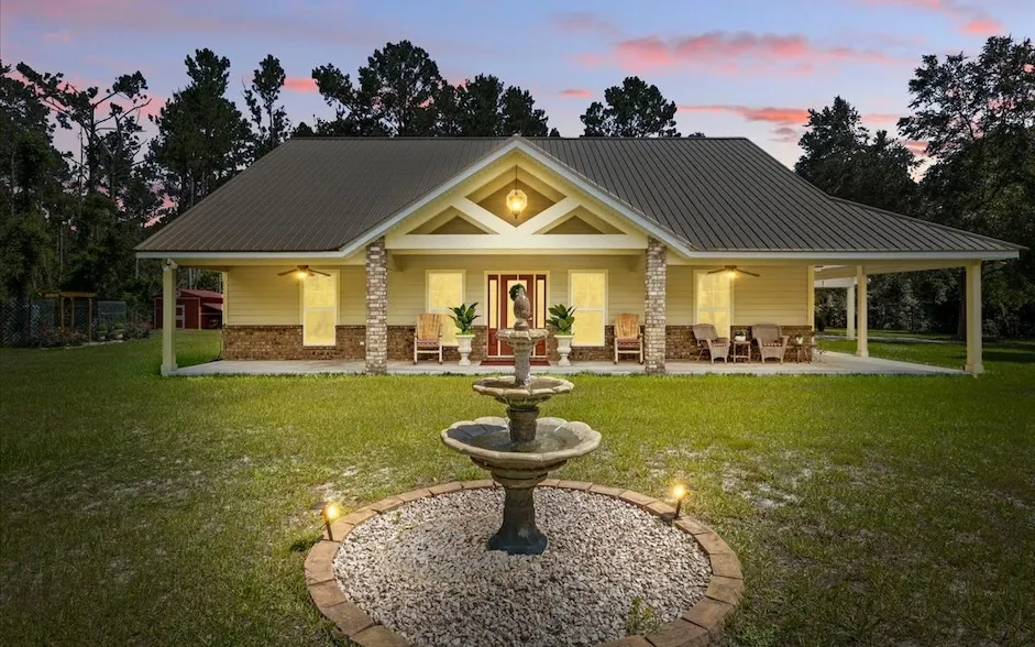 Peaceful, Self-sufficient, and Beautifully located! A custom home nestled among nature, with space for animals and a garden, plus the convenience of nearby rivers, springs, and towns. The backup whole house generator and propane supply are a fantastic touch, ensuring you're never without power. And being just an hour from the Gulf and two hours from the Atlantic? That s the best of both worlds. There is a nearly Two Acre Pasture, Horse shed, Garden Shed, Tractor Shed, High Speed Fiber Optic Cable, Gas Fire Place, Old Wood like Bamboo Flooring throughout, Granite Counters, Pop-Up TV in the Primary Bedroom so as not to interfere with the Bay Window view and a really cool tree in the forrest on the property.