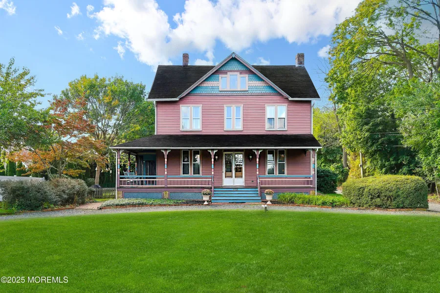 Unique Wall Township property! Step back in time to this beautifully restored 1880 farmhouse with modern updates throughout. This 5-bedroom, 3-bath Manasquan/Wall home on a .65-acreage features an AI-reimagined white exterior with black trim. A wraparound screened-in porch. Inside are wide-plank wood floors, original trim, and a newer chef's kitchen. The current mother-daughter layout features a first-floor bedroom, bath, and living space that can be easily converted into a primary suite if so desired. A large, restored barn can provide storage or offer creative use. Minutes to beaches, shops, and schools.