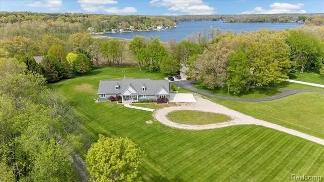 GO BIG (LAKE) AND GO HOME HOME!Get ready for year-around excitement on All-Sports Big Lake!!!Welcome to your dream home—an immaculate custom-built ranch (2019) offering over 4,200 square feet of luxurious living space,set on 2.5+ serene acres with more than 50 feet of water frontage. This home seamlessly blends modern comfort with natural beauty,offering the ultimate lakeside lifestyle. Step inside to an open-concept floor plan filled with natural light,white oak hardwood flooring and panoramic views from nearly every room. This spectacular ranch has so many amenities that are offered with this home including a gourmet kitchen featuring quartz countertops,black stainless steel appliances,dining area and a pantry—perfect for entertaining or everyday living. The Great Room has soaring ceilings and a beautiful fireplace,flowing into a sun-drenched 4-seasons room with windows that capture the breathtaking property. The spacious Primary Suite offers a true retreat with a spa-like bathroom,an oversized walk-in closet and an adjacent flex room. A first-floor laundry room adds everyday convenience. Downstairs,the finished walkout lower level is entertainment-ready with a second full kitchen,two large bedrooms,two full bathrooms,a family room with a wood-burning stove. Enjoy three outdoor living spaces—two expansive decks and a patio overlooking a little slice of heaven in your gorgeous backyard that gives you all the UP NORTH feels without leaving home. Car enthusiasts and hobbyists will love the extremely rare TWO independently attached oversized 3-car garages totaling a 6 car garage. Garages are approx 980sf (one is heated). Additional features include dual-zoned heating, reverse osmosis,iron-out system,generator pre-wiring and a fully updated interior layout that’s been meticulously designed for comfort,style,and function. A stones throw away from Indian Springs Metropark. This is your chance to embrace the ultimate lifestyle in lakeside living,where every day feels like a vacation.