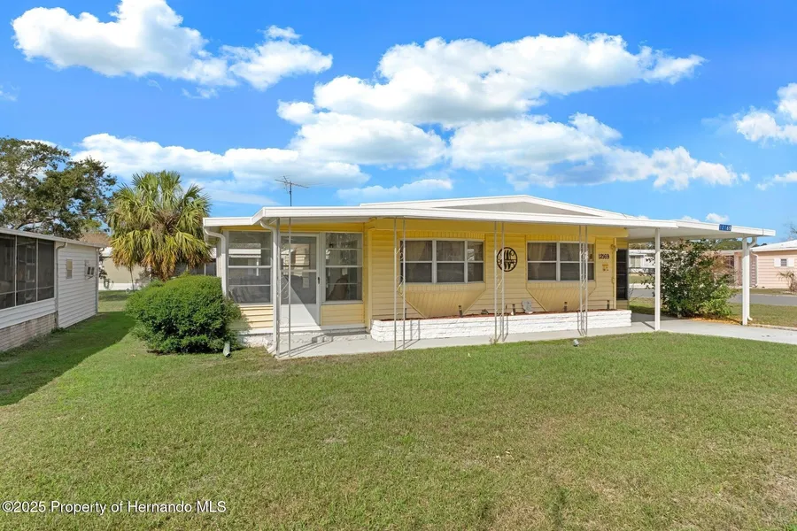Fully Furnished & Equipped 2-bed, 2-Bath Corner Lot Home in High Point! Welcome to this bright and airy 2-bedroom, 2-bathroom home on a desirable corner lot in the sought-after 55+ High Point Community, where you own the land! This home features a spacious living and dining area, a large screened front porch for your morning coffee and a glass-enclosed sunroom off the main living space - ideal for year-round enjoyment and entertainment. Pergo flooring runs throughout, while both bathrooms have been recently remodeled with stylish ceramic tile, walk-in showers, and updated countertops. Enjoy low-maintenance living with a private well for landscaping, plus garden tools to make upkeep effortless. The home also comes with a BBQ grill, perfect for outdoor entertaining. Recent upgrades include a brand-new A/C unit (2024) and a new hot water heater. The shed/utility room provides extra storage and houses the washer and dryer. For parking, enjoy the convenience of two separate driveways - one in front with a covered carport and another in the rear with a covered golf cart area. High Point offers a vibrant Florida lifestyle with amenities such as golf, tennis, pickleball, a heated pool, and numerous social activities. Conveniently located near shopping, dining, medical facilities, and popular attractions like Weeki Wachee Springs State Park and Bayport Pier for fishing and stunning Gulf sunsets. Plus, you're just an hour from Tampa International Airport. This home is move-in ready. Schedule your showing today and start living the Florida dream!