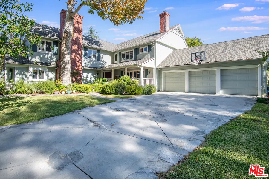 Classic custom-built traditional, beautifully maintained on a long private drive. Positioned perfectly on a large acre+ lot overlooking the valley with incredible views and total privacy on all sides. Located above the famed "Silver Triangle" neighborhood and within close proximity to Ventura Blvd shops, dining and the Fryman trails. This 5 bed, 5 bath, 4500 square foot estate is filled with natural light and has an incredible floor plan. High-end finishes, spacious living room, formal dining room with french doors leading to covered porch, library, separate office, kitchen with fireplace that doubles as family room and breakfast area. Large front and rear covered porches create the ultimate indoor/outdoor lifestyle showcasing spectacular views of the valley. Outdoor luxury living complete with large swimmers pool, fruit trees, gardens, 3 car garage plus workshop, large driveway with plenty of parking and an inviting grassy yard. Ultimate privacy with easy access to Hollywood and the Westside. Extremely rare opportunity to own an enormous gated Studio City view property with immense pride of ownership.