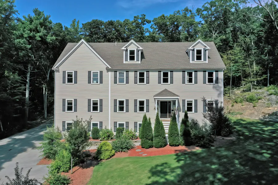 Incredible 5 year young colonial on picturesque knoll with stunning views. Stately set back on 4+ acres, this home presents better than new. Lush landscape and curb appeal. Enter into 2 story foyer - large arched doorways and columns abound throughout. First floor has 10 ft ceilings! Gleaming hardwoods with walnut stain on 1st floor. Cream raised panel kitchen cabinets, subway backsplash, Chef's gas range, center island, granite counters, and high end stainless steel appliances. Gas fireplace in oversized 31x22 family room. Impressive turned stairway to the second level. Huge master suite with fireplace and master bath with separate tub and tiled shower. Three additional generous size bedrooms. Double sinks in both full bathrooms. Convenience of 2nd floor laundry room complete with butcher block counter. Walk up attic with full windows or full basement for future expansion. Lifetime architectural roof shingles. Hardie Fiber cement siding. Composite back deck and large stone patio with hot tub overlooks 4+ acres of wooded privacy. THIS IS A MUST SEE!