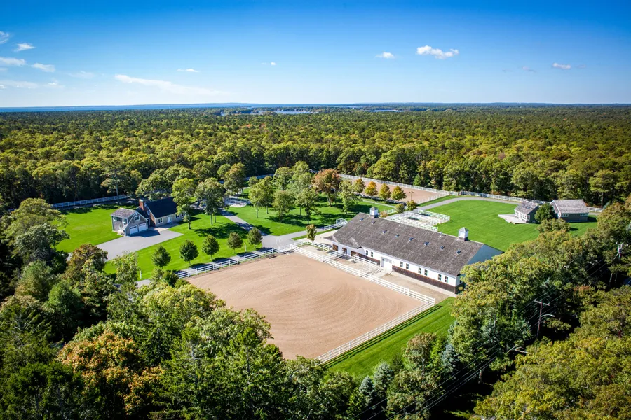 A stone's throw from the ocean on picturesque Cape Cod, this 7.42 acre custom equestrian property was built with the utmost attention to detail. Located just outside New Seabury Resort's golf, tennis, shopping, dining and pristine beaches, South Cape Farm can combine the country club lifestyle with the intimacy of a private farm. The year-round property includes state-of-the-art amenities designed for the comfort, health and safety of the horse and rider, including a heated indoor ring with sky lights, custom footing for indoor & outdoor arenas, 9 oversized mahogany stalls complete with individual paddocks and automatic watering systems, rubber matted flooring, interior/exterior wash stalls, grooming areas, powder room, hay/grain storage, office nook and surveillance system. Flexibility to convert sand paddocks to grass or add enclosed pastures for grazing. Completed in 2010, the main residence boasts 4 beds, 2 full & 2 1/2 baths, office, fireplace and a 2-car garage. Also on the property, a sprawling studio apartment complete with top-of-the the line appliances, perfect for farm manager. A one of a kind Cape Cod property with endless possibilities. Also ask about lease options!!