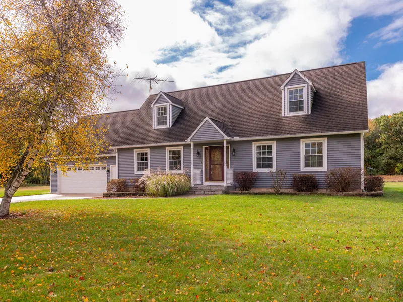 This well maintained Cape Cod home sits on 12 peaceful acres with Portage Creek frontage,offering space,comfort and charm inside and out. New exterior siding in 2020 and new windows in 2004. Whole house Briggs generator. The kitchen includes a pantry,plenty of cabinet storage ,a snack bar and all appliances. The informal dining area has room for a large family table and has French doors leading to the deck and patio overlooking the above ground pool. All rooms are very generous in size including the main floor 24x14 primary suite with french doors to the patio, a large walk in closet ,private bath with dual vanity, Jacuzzi tub and corner shower. The upper level has two large bedrooms both with walk in closets and the third full bath. The finished basement offers more living space with endless possibilities. The 30x40 pole barn has water and is insulated, heated and cooled. There is an 8x10 office with its own heat and air, a 10x30 loft storage area and three separate 10 ft overhead doors.