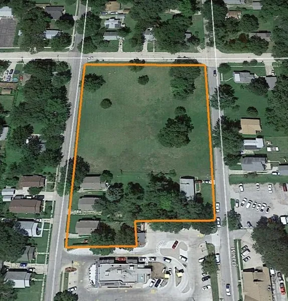 1221 W Seventh Ave, Emporia, Kansas is an open 2 acre lot setup for residential development and a perfect location for condominiums or townhomes.
