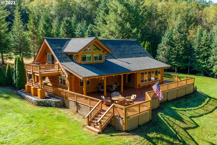 Imagine coming home to a meticulously maintained custom built log home. You will enjoy beautiful river frontage and your own bountiful year-round freshwater creek. You can record your own live streaming water meditation music while enjoying 22 acres of seclusion. Hike on your private property if you wish. You have woods and wildlife to admire. Fish and play in the Siuslaw River. Cook some dinner in a chef's kitchen with a big island, plenty of counter space, open floor plan and get the wood stove going. When it's time for bed, relax by stargazing on your private balcony inside the owner's suite! Then start it all over again. Get your morning going with a cup of coffee on a 2640 Square Foot wrap around deck with breathtaking views. In the winter months you can enjoy storm watching and rest assured with a whole house 20,000 watt generator. Invite your friends and family to stay with full RV hookups. Book your showing appointment and prepare to be amazed!