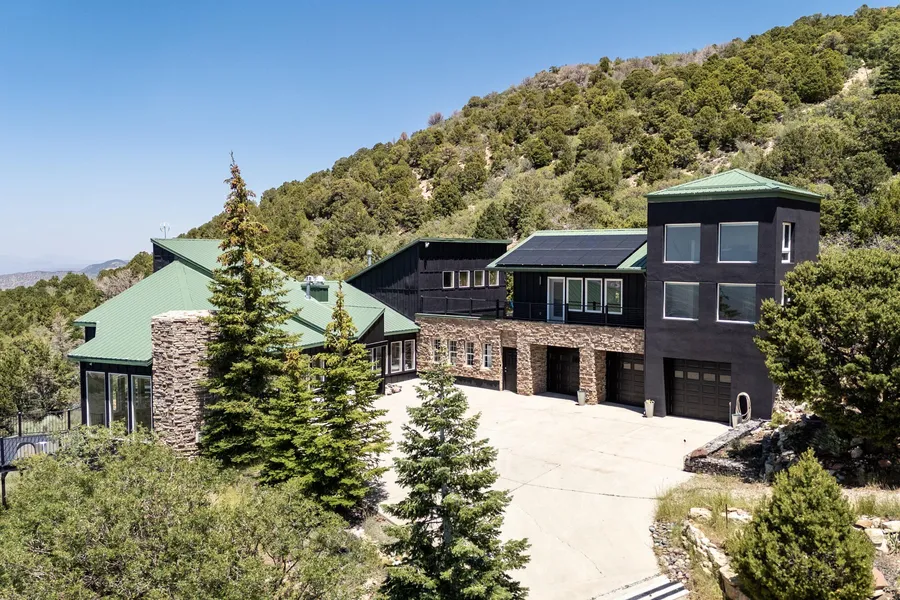Prepare to be amazed! Three elements of good design are the use of space, light and air, all of which are on display in this beautiful home called the ''Aerie''. Suspended high above the city on the rim of Cedar Highlands, with crystal clear air and 360 degree views. This home is more unique and modern, than other homes in the area. Every angle of its design is a masterpiece of art, with a panoramic view from any window. When you walk into the custom front door, you are surrounded by large windows, through which the view and light pour in. Step out to the surrounding deck, to gaze upon the city and distant mountain areas. Nestled up against BLM forest land you can observe nature while in your hot tub as deer slowly walk by and squirrel run on the rocks, in the natural landscaping including extensive beds of lavender that surround the property. The home has solar panels installed that are already paid for. This Fortress on top of the hill is well appointed with quality custom features and high end European appliances. A guest quarter attached but separate from the home, has two bedrooms, 1 bathroom, kitchen and a lovely screened in porch for summer nights. Gourmet kitchen and a sunroom with heated floors. Master Suite has a loft study or reading lounge. Above the grand room is a private office with its own balcony, with view. This home is for the buyer that wants a get-a-way, who loves to entertain, who appreciates good design. It is truly a unique place floating above the city.