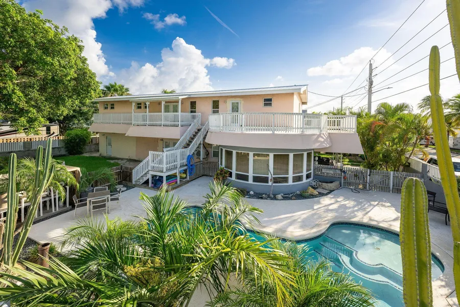 Discover the essence of island living in this expansive 3,197sf, 6-bedroom, 3-bathroom home, perfectly positioned on a generous 9,500sf corner lot in the heart of Key West. This spacious 2 story CBS home features a gourmet kitchen, tile floors, 2 laundry areas, sundeck & a new roof. The sprawling yard, enclosed by a privacy wall, offers plenty of room for boat and trailer storage, RV parking, and a safe play area for kids and pets. An in-ground concrete pool with water feature adds to the outdoor appeal, while a storage shed provides extra convenience. Offering a rare combination of convenience and space, this residence is ideally located minutes from schools & grocery stores, while also being near the new Happy Landings Marina and the Key West Yacht Club, making boating a breeze! With a flexible layout and ample space, this property is brimming with possibilities, ready to be tailored to your vision of the perfect island retreat.