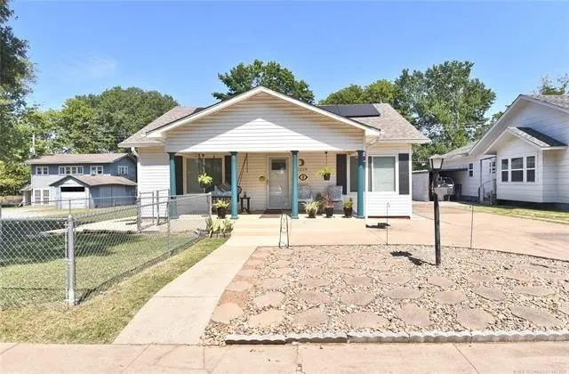 A BEAUTIFULLY maintained and updated craftsman style home located in Okmulgee, east of Highway 75. This home boasts 2 bedrooms with 2 full baths and a bonus room perfect for an office or craft space! When you arrive at this home, the first thing you'll notice is a perfectly manicured yard and a wide driveway leading to the deceptively large, finished 2 car garage with a new electric overhead door. Inside is a spacious living area that guides you into a tastefully remodeled kitchen with plenty of room to cook, soft-closing storage and a built-in Lazy-Susan. Includes a new HVAC system and dehumidifier, new storm windows, insulated front door, double insulated walls and attic. You'll enjoy the benefits of a lower monthly electric bill as well, thanks to the installation of solar panels! No need to clean out your gutters with the closed gutter system! This home has been loved dearly and wonderfully preserved to keep some original, small town charm. Whether you're looking to relax on your spacious front porch, or need to stay close to OSU-IT, this home is perfect for you!