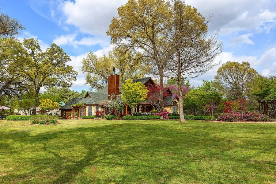 Welcome to your own private hilltop paradise in Whitehouse, near Tyler, Texas! Nestled on 29.454 park like acres, this meticulously updated 2312 sq. ft. cedar & stone home is like new. Step inside to discover a thoughtfully planned home featuring 3 bedrooms with option of a 4th bedroom or office, ensuring plenty of space for living and working in comfort. Two baths, including a luxurious primary bath with large shower, double sinks, & soaking tub, are elegantly appointed. The inviting living area with vaulted wood ceiling & stone fireplace is the heart of the home, overlooking the beautifully landscaped grounds. Options are endless for the 2nd floor carpeted loft w/pine ceiling! The gourmet kitchen is freshly designed with generous cabinetry, beautiful granite counters, stainless appliances including a commercial stove, vent hood, pot filler, wine & beverage refrigerator, microwave & dishwasher. A cozy breakfast/sitting area is located in the corner of the kitchen, along with additional seating at the island. The dining area, adjacent to the kitchen, also provides access through French doors to the patio & sparkling pool beyond. Rich hardwood floors are found throughout the living areas, with tile in bathrooms. A separate bonus room connected by a covered walkway provides an add'l bedroom or game room. The grounds surrounding the home are a true oasis, incredibly landscaped & maintained to perfection. Stroll on winding stone paths through lush gardens bordered with boxwoods & filled with azaleas, Japanese maples, hydrangeas, redbuds & dogwoods! Wisteria covered pergolas & a covered seating area offer shady retreats for relaxation, prayer, & meditation. The metal shop/garage provides space for vehicles & projects. Blackberry vines, a vegetable garden, & a chicken coup complete with happy residents add to the charm. Equestrian enthusiasts will appreciate the 2 stall horse barn & corral. Seize this opportunity to live the country life you've always dreamed of!